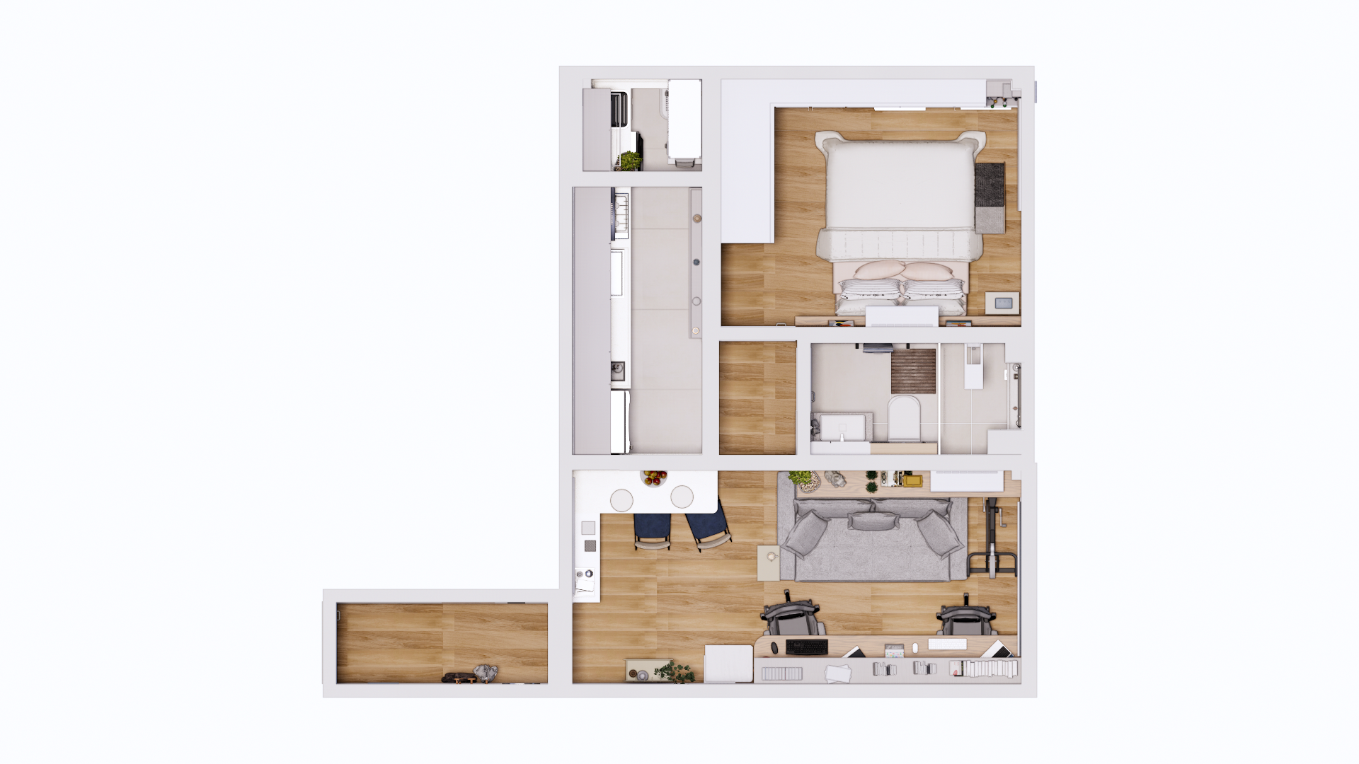 Located in Campo Belo, the Lino Apartment will feature minimalist tones, with blue as the main color. Lightness and harmony permeate the daily life of our client and her pet. The living room will be the multifunctional heart of the home: sometimes a home office, other times a space for relaxation and family time. The open-plan living area, integrated with the kitchen, creates a sense of spaciousness. To optimize every detail, cabinets and floating shelves will provide functionality to the space, while plants will bring life, color, and coziness, giving this home a fresh new vibe!