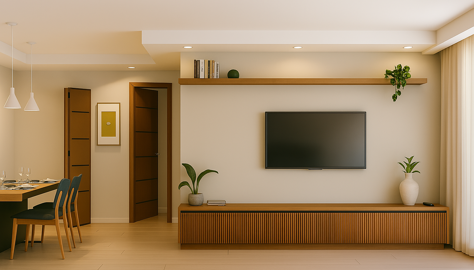 Localizado em São Paulo, o projeto do Apartamento Taupe foi pensado para transformar 53m² em um espaço otimizado, funcional e cheio de estilo. Substituímos a mesa de jantar tradicional por um canto alemão estratégico, garantindo conforto e aproveitamento máximo do espaço. Para ampliar visualmente o ambiente, inserimos espelhos que criam uma sensação de amplitude e sofisticação. Além disso, projetamos um painel otimizado para a TV, com prateleiras planejadas, permitindo uma circulação mais fluida entre o sofá e o rack.