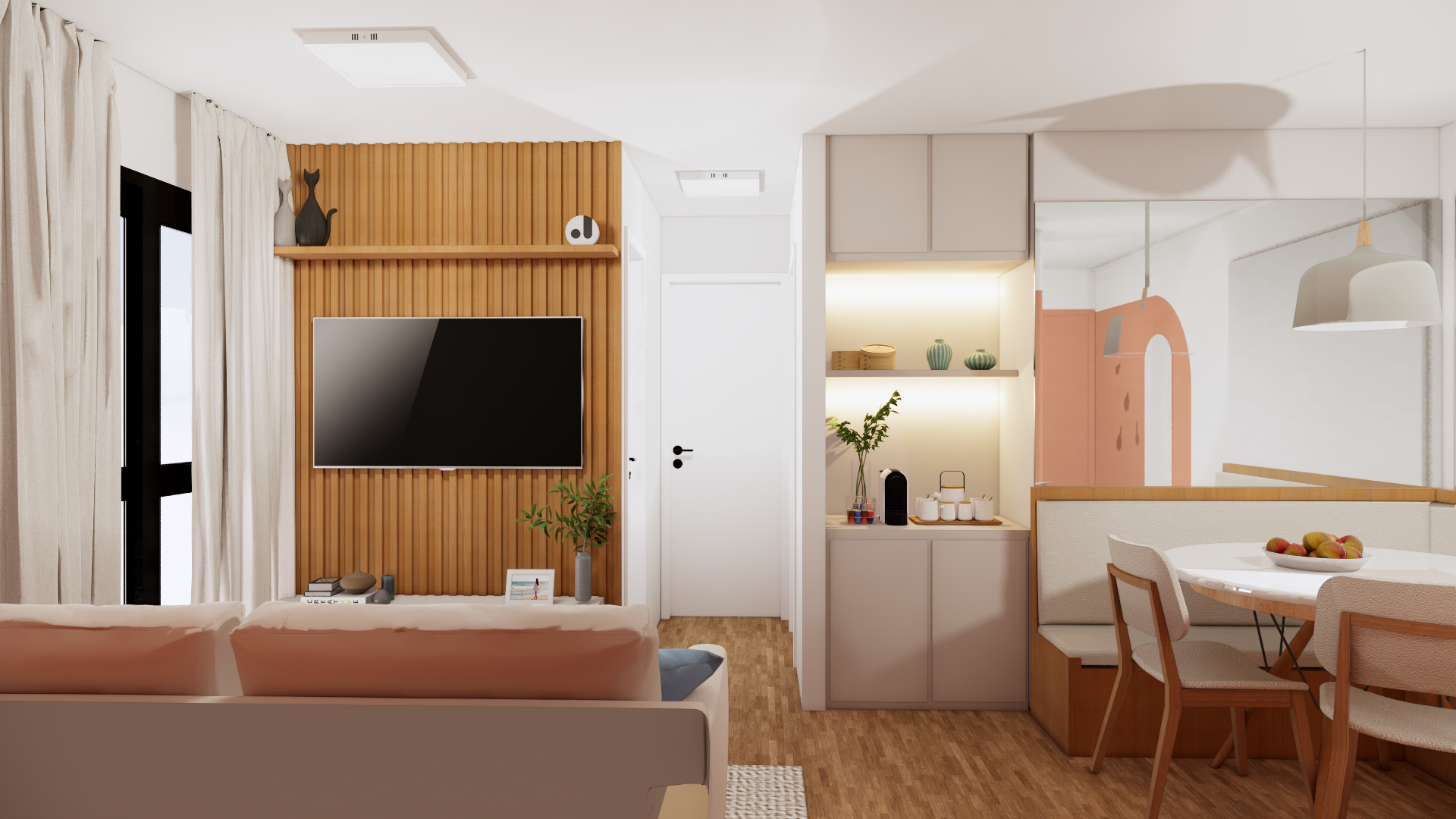 Localizado em São Paulo, o projeto do Apartamento Ámbar foi pensado para transformar o espaço com foco na otimização e aconchego. A cozinha foi alterada para incluir uma lava-louças, atendendo ao desejo da cliente de maior praticidade. A marcenaria foi um elemento chave para aproveitar cada metro quadrado, enquanto as cores com tons coloridos, neutros e madeira foram combinadas para trazer acolhimento e personalidade ao ambiente. Substituímos a mesa de jantar tradicional por um canto alemão funcional e projetamos um canto de café aconchegante. O hall de entrada foi repensado para criar uma transição suave entre os espaços, oferecendo uma recepção agradável e bem planejada.