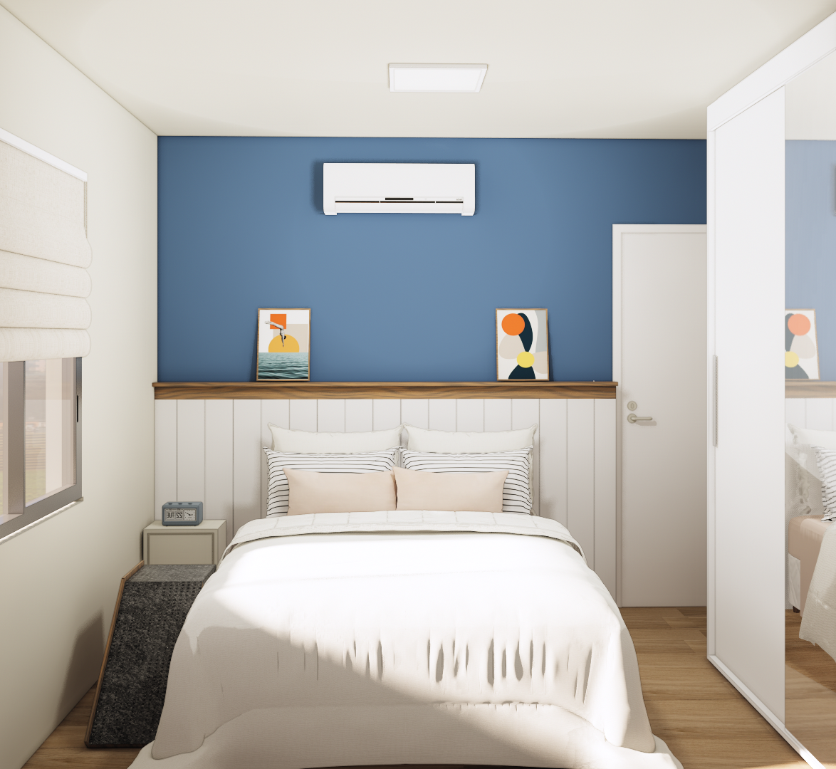 Located in Campo Belo, the Lino Apartment will feature minimalist tones, with blue as the main color. Lightness and harmony permeate the daily life of our client and her pet. The living room will be the multifunctional heart of the home: sometimes a home office, other times a space for relaxation and family time. The open-plan living area, integrated with the kitchen, creates a sense of spaciousness. To optimize every detail, cabinets and floating shelves will provide functionality to the space, while plants will bring life, color, and coziness, giving this home a fresh new vibe!